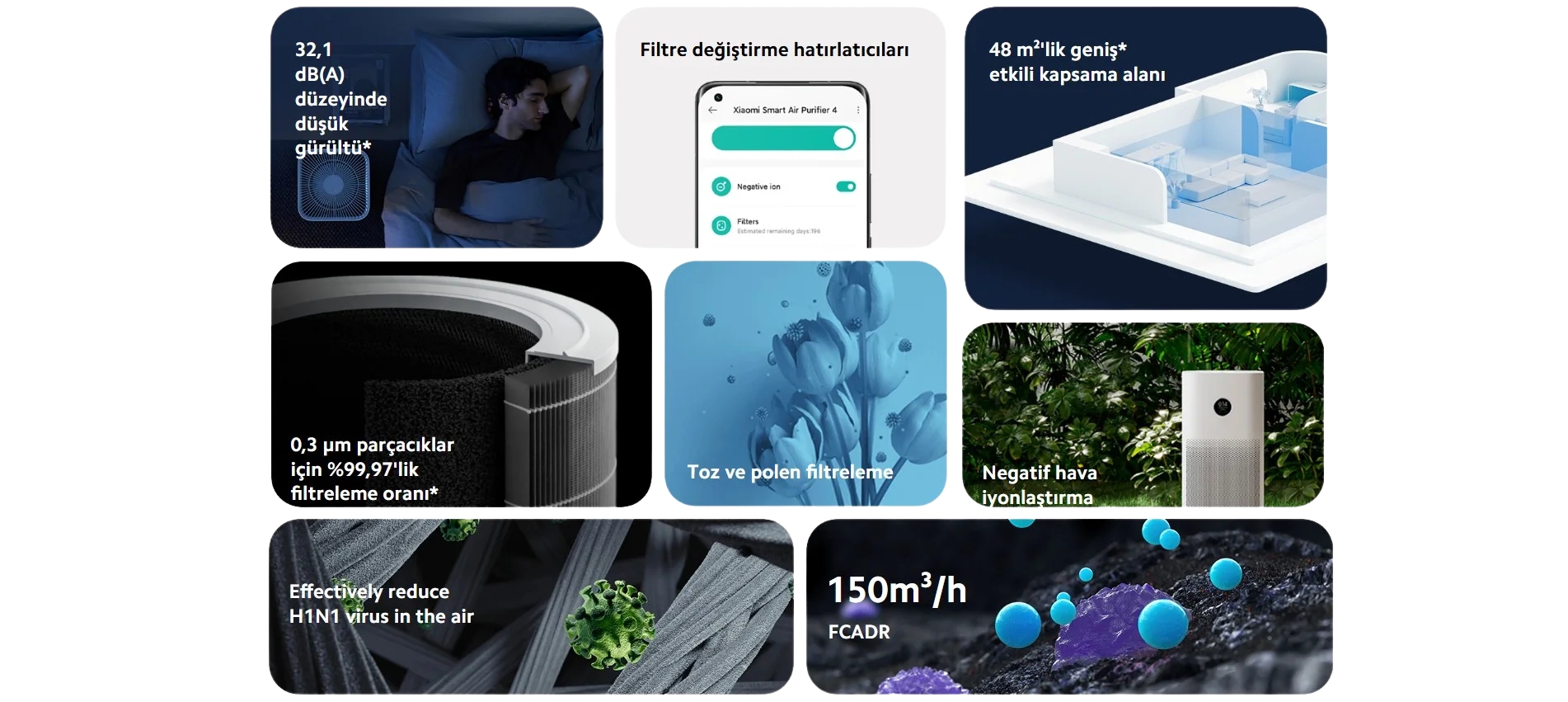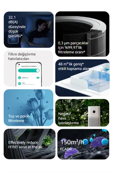 Xiaomi Smart Air Purifier 4, güçlü temizleme performansı, kullanıcı dostu akıllı kontrol yolları ve şık minimalist tasarımıyla yaşam alanlarınızın havasını gerçekten daha iyi bir seviyeye taşımayı hedefler. Günlük kullanımda hem teknik hem fonksiyonel beklentileri karşılamak üzere hazırlanmış olan bu model, sağlıklı ve ferah bir iç ortam isteyen kullanıcılar için güvenle tercih edilebilir bir çözümdür.