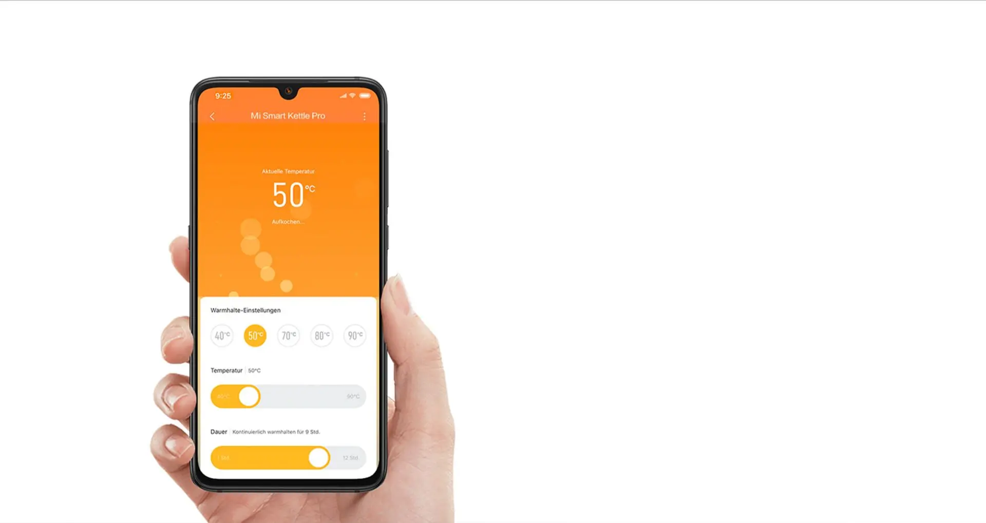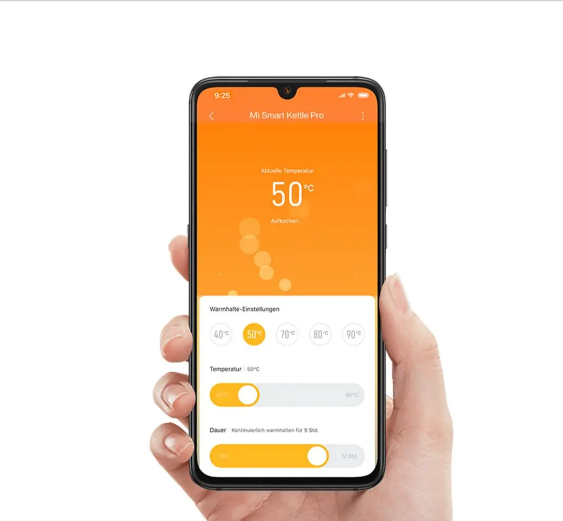 Sıcak tutma sıcaklığı ve süresi, Mi Home/Xiaomi Home uygulamasından ayarlanabilir. Her modun sıcaklığı 40–90°C arasında ayarlanabilir. 12 saate kadar sıcak tutma süresi. Kullanıcı alışkanlıklarınıza bağlı olarak "aldıktan sonra sıcak tut" veya "kaynadıktan sonra sıcak tut" seçeneğini etkinleştirebilirsiniz*.